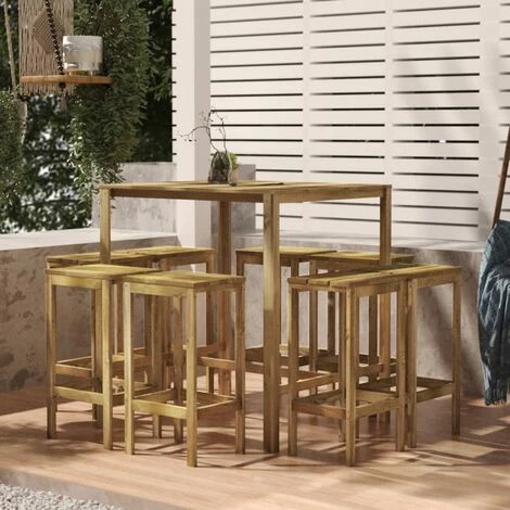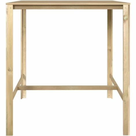 Cette table de bar en bois avec un aspect simple est conçue pour être un excellent supplément à vos espaces extérieurs. Vous pouvez discuter ou prendre un bon repas avec votre famille ou vos amis autour de cette belle table de patio. Elle est fabriquée en bois de pin imprégné, ce qui la rend durable et résistante à la corrosion. La table de salle à manger de jardin convient donc à un usage extérieur. Le design élégant de la table de bar en fait un accessoire intemporel pour votre jardin. De plus, elle peut également être utilisée à l’intérieur. Remarque : Afin de prolonger la durée de vie de vos meubles d’extérieur, nous vous recommandons de les nettoyer régulièrement et de ne pas les laisser à l’extérieur sans protection inutilement.Nettoyage : Utiliser une solution savonneuse douce.Stockage : Si possible, stockez dans un endroit frais et sec à l’intérieur. Si le produit est stocké à l’extérieur, protégez-le avec une housse imperméable. Essuyez et séchez l’excès d’eau ou de neige des surfaces planes après la pluie ou une chute de neige. Permettez une circulation d’air suffisante afin d’éviter les dommages liés à l’humidité.